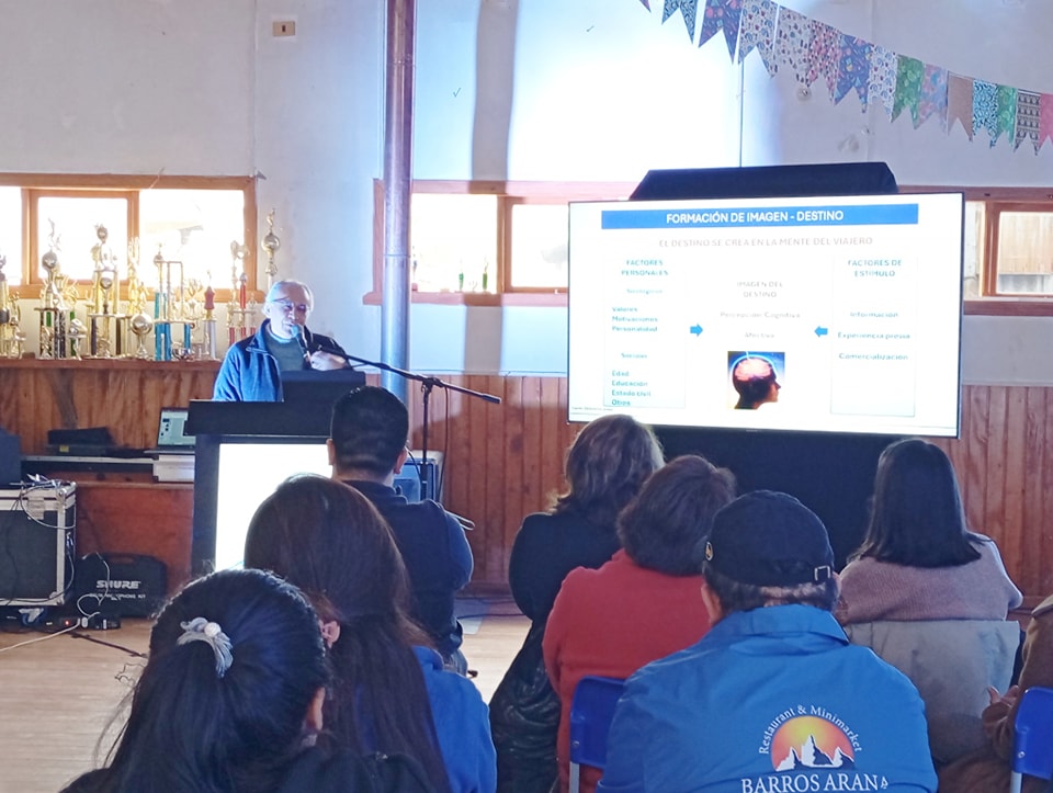 El evento, enmarcado en la Semana de las MiPymes, contó con las exposiciones de Humberto Rivas, Geólogo, Dr. Economía y derecho académico USS; Andrea Zabala, socia fundadora Destilería Tepaluma, y Gonzalo Schilling, microempresario y ganadero de La Junta, quienes nos dieron a conocer sus experiencias con respecto al turismo, las oportunidades para el desarrollo turístico sostenible, y los encadenamientos productivos en la Comuna de Cisnes.